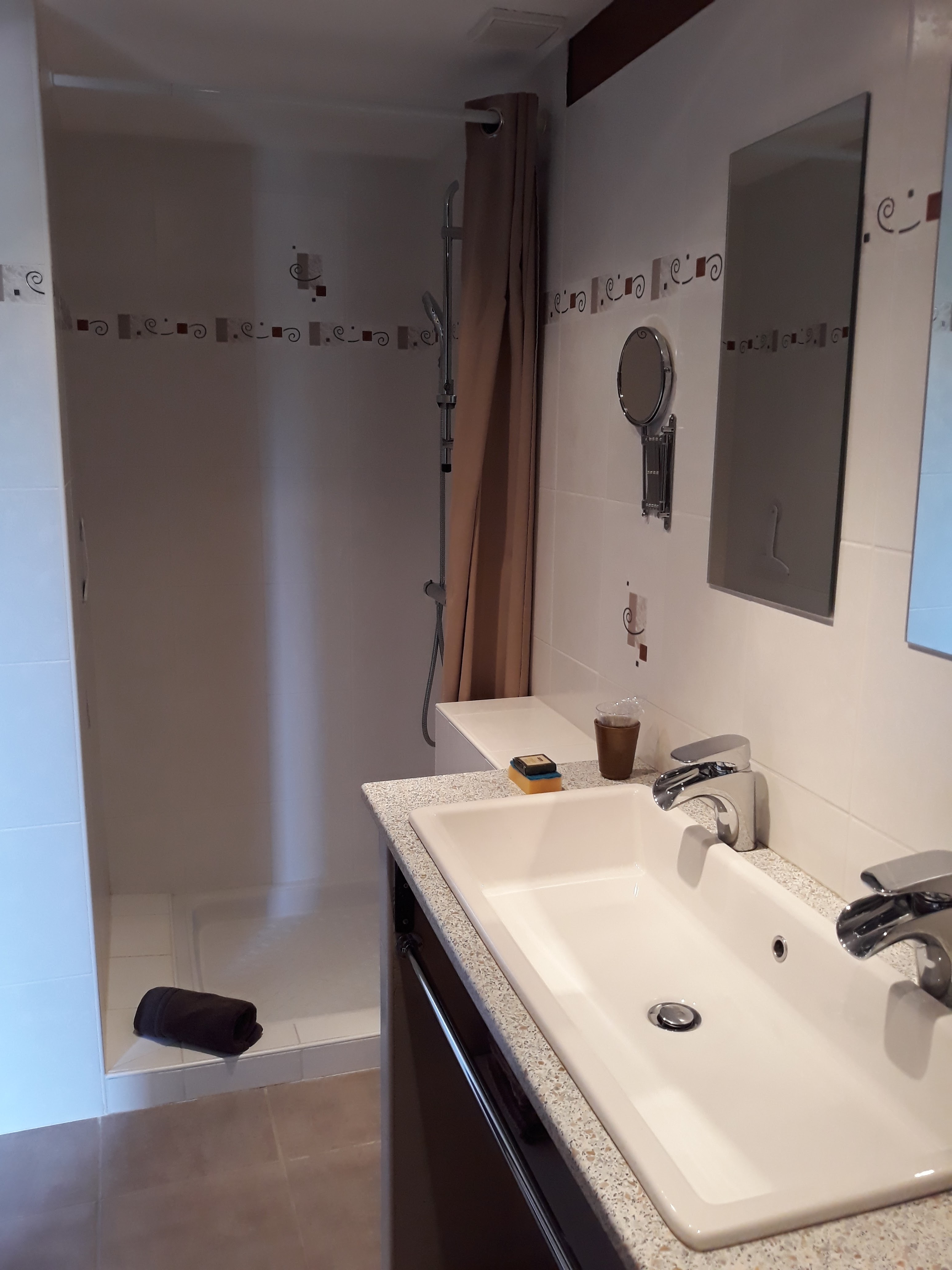 1 Lit en 160 et un cabinet toilette (douche, lavabo, sèche-cheveux et WC).